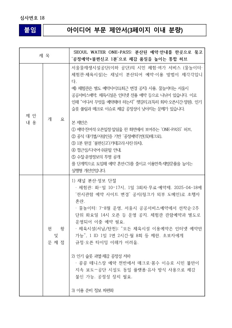10.SEOUL WATER ONE-PASS - 분산된 예약·안내를 한곳으로 묶고‘공정예약+불편신고 1분’으로 체감 품질을 높이는 통합 허브